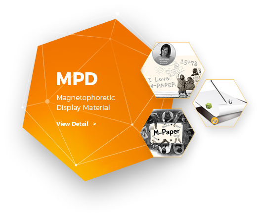 캡슐안에 균일하게 분산된 유색의 자성 나노입자들을 조절하여 정보를 구현하는 기술로써, 얇은 필름형태로 제작되어 종이처럼 유연하고, 휴대하기 간편하며, 쉽게 쓰고 지울 수 있는 신개념 문구류로 적용이 가능합니다.
