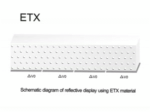 ETX is an electrically tunable photonic crystal material technology that is applicable to dispersed nanoparticles which are finely controlled by the electrical signal to display variable colors in all areas of visible light.