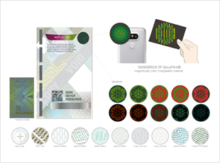 M-SecuPrint는 외부 자기장에 의해 색상이 변화되는 세계최초 자기색가변 나노소재기술 MTX(Magnetically Color-changeable Photonic Crystal Material)가 그대로 적용된 보안소재제품으로, 철저한 보안시스템 하에 안정적인 양산공정공법을 확보하여 대량 생산체제를 갖추고 있는 제품입니다.